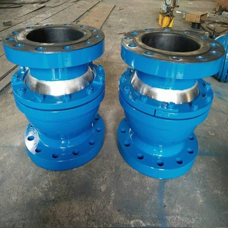 球形补偿器 依靠球体的角位移来吸收或补偿管道伸缩器的一个或多个方向的水平位移。补偿器应成对使用,单次使用无补偿能力,但可用作管道通用接头。因此具有补偿能力大、流体阻力小、变形应力小、无盲板力、固定支撑力小等优点。 管道和设备材料应经久耐用,不污染水体,便于施工和维护管理。双法兰限位伸缩机技术人员